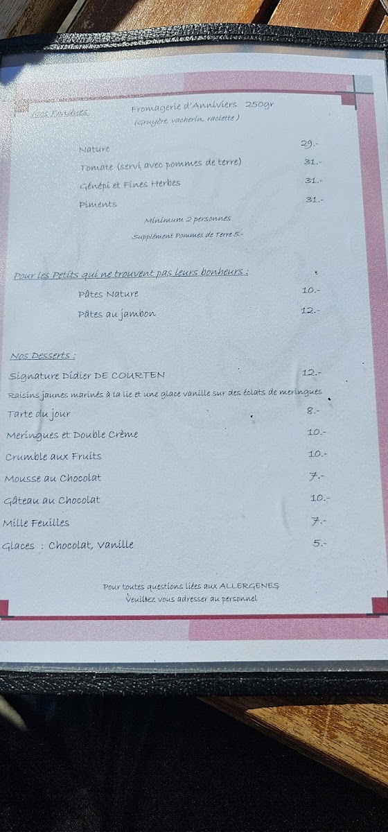 Located in the picturesque mountains of Grimentz, Restaurant Le Marais offers a menu that perfectly blends alpine tradition with refined culinary craftsmanship. The dishes are celebrated for their rich flavors and high-quality ingredients, notably the restaurant’s renowned homemade cheese, which captures the essence of Swiss terroir. Guests praise the hearty soups and expertly prepared pastas, providing comforting warmth after a scenic hike from Bendolla cable car.